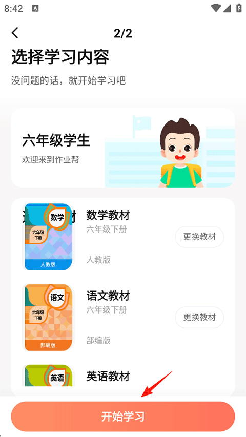 4、最后更换年级后再选择您需要的学习教材,点击开始学习即可。