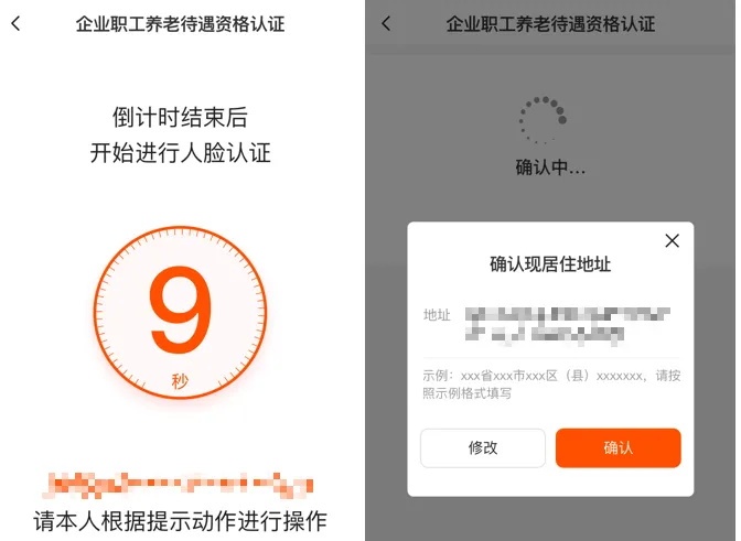 3.确认弹出的居住地址信息,信息有误可以点击“修改”进行更新,操作完成待出现“认证成功”的提示后即可。