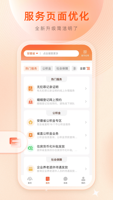 v3.2.7安徽政务服务网app(官方名:皖事通)是为自然人、法人及其他组织提供一站式办事服务的新型电子政务平台。安徽政务服务网app现开通办事指南、办件查询、阳光政务、政民互动、政务服务旗舰店、工作动态等栏目,主要实现政务服务网上统一入口、统一申请、统一受理、集中办理、统一反馈和全流程监督等。