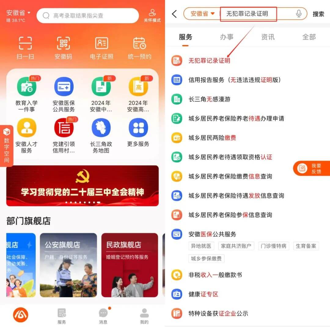安徽政务服务网app如何办理“无犯罪记录证明”
