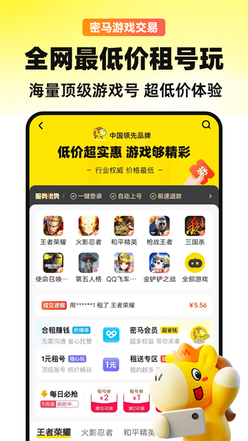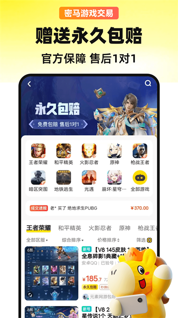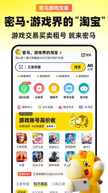 v7.10.4密马游戏交易是一款非常专业的游戏交易服务软件,覆盖国内外手游端游、steam联机单机游戏等全品类游戏交易服务,为热爱游戏的你,提供手游端游账号交易、热门游戏代练租号陪练等一系列游戏交易服务。安全的交易规则,还有系统提供的售后保障服务。在平台上可以直接领取线上的优惠券,直接减免就能使用。一手游戏潮玩手办周边,新潮实物手办盲盒,在密马游戏交易,你总能找到新奇物件;经典模型玩具、游戏闲置实物周边等,在密马游戏交易,你总能发现有趣的玩意儿。密马游戏交易,为游戏创造价值!