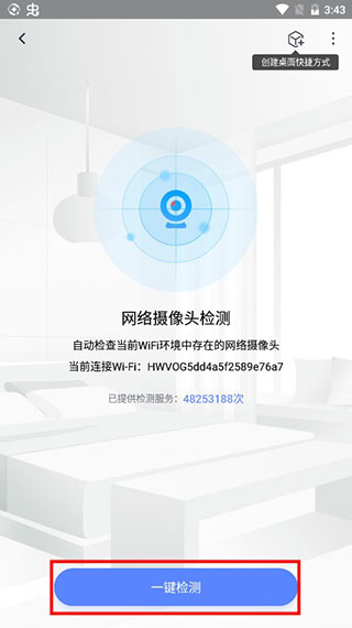 3、最后点击”一键检测“,即可检测是否有摄像头在周围