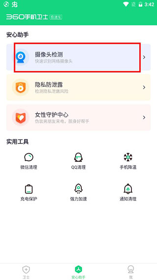 360手机卫士极速版怎么检测摄像头