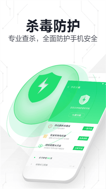 3、【手机杀毒】专业查杀,全面防护手机安全。