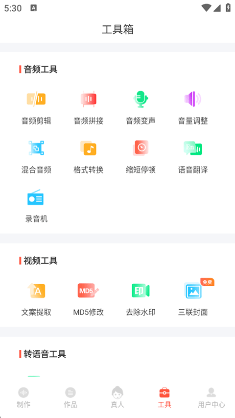 4、在工具箱页面有众多音频视频工具可供使用,堪称一款包罗万象的多媒体编辑神器。
