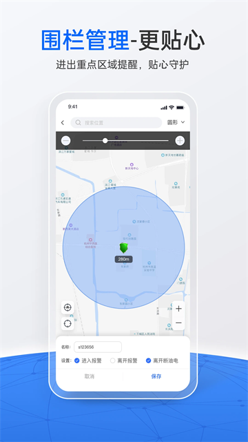 4、用户还可以设置您需要的围栏范围,然后点击保存。