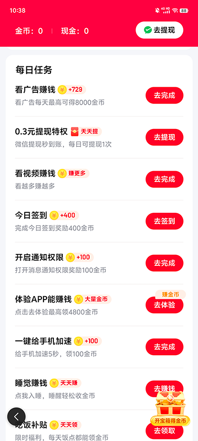任务系统全新上线,邀请好友做任务,金币自动兑换,天天领现金。