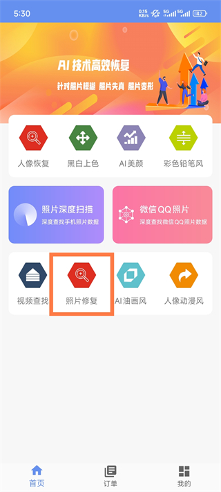 1、打开照片恢复大师App点击深度查找微信QQ照片数据