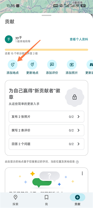 7、评价您去过的地点。添加照片、缺少的道路和地点。