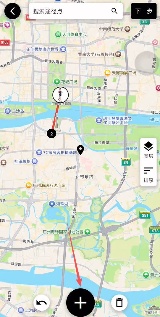 1、打开制作路线页面,点击下方+按钮添加轨迹点