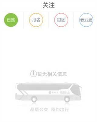 3、在关注界面,可以查看你已购,报名,跟团或是你发起的信息;