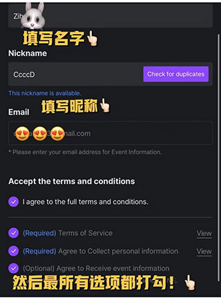 4、填上自己的名字,将所有选项都打勾