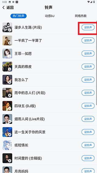 4、选择喜欢的音乐点击设铃声就可以了
