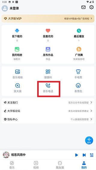 2、进入个人页面后点击音乐电话