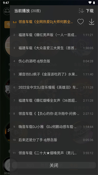 低音质文件全部下载一键下载全部舞曲,方便离线也能一样嗨,好听的音乐随我行。