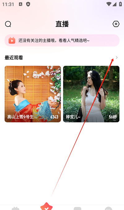 2、“关注”页面会显示用户最近观看过的直播,点击“最近观看”