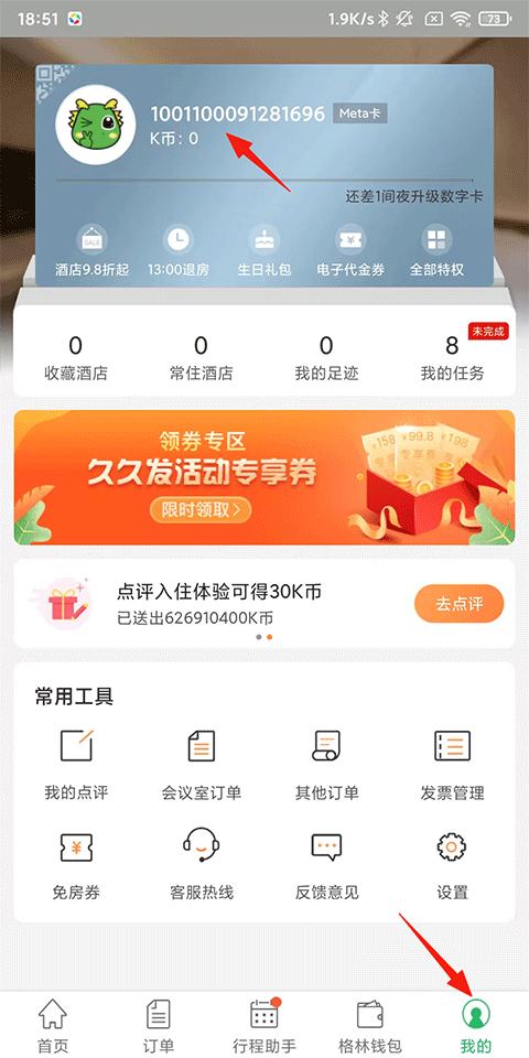 首次登录APP可获赠100元代金券;及时掌握格林旗下酒店近期资讯和优惠活动,还可玩游戏抢代金券,签到、预订、入住、点评获的K币积分奖励。