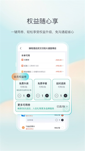 会员积分:app订房最高可享受3倍积分,积分可换免费房,积分可抵现,订房高至15倍积分;