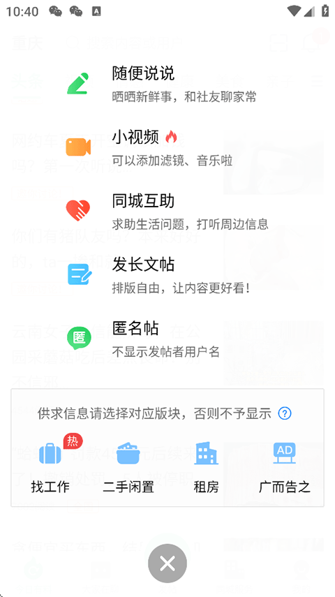 v4.29.19畅说108(原108社区)是一款深耕三四五线城市的本地生活综合服务平台,致力于构建"资讯+社交+服务"的社区生态。畅说108覆盖绍兴、嵊州等68个城市,汇聚数十万本地用户,提供涵盖民生资讯、消费娱乐、二手交易、同城互助等多元化的生活服务,满足居民日常社交与生活需求。