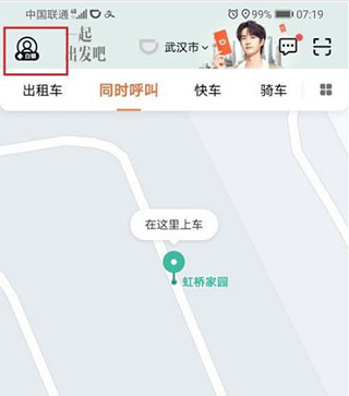5、点击左上角的人形图标,可呼出个人信息设置页面。用户可查询自己的行程单、钱包、更改设置等等;