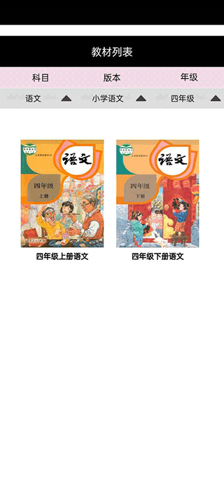 1、打开软件进入首页,有上册和下册课本可供选择,可以选择自己需要学习的课本;