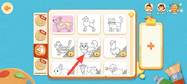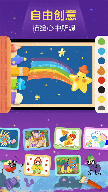 绘画主题每月更新,主题内角色阶梯式难度递增,不定期为孩子开放铅笔、水彩、油画、蜡笔、墨水笔、马克笔、织物等12种丰富多样的绘画工具,助力孩子自由创作,无限想象;