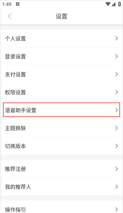2、在“设置”页面点击“语音助手设置”功能;