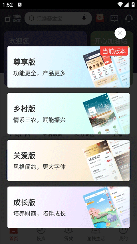 重庆农商银行手机银行APP如何切换版本?