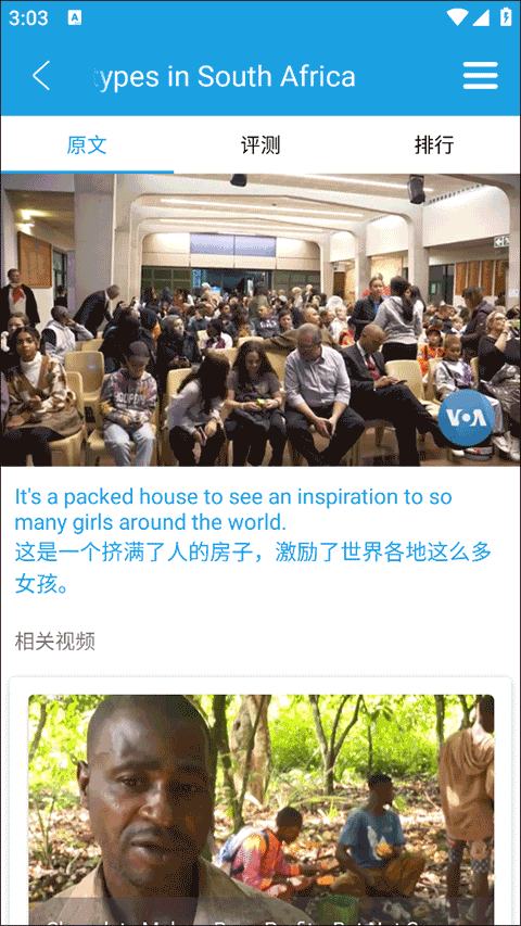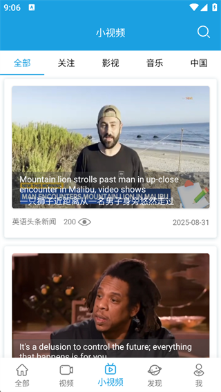 4、在小视频中,你可以通过点击具体视频在这里对视频内容进行中英文互译。