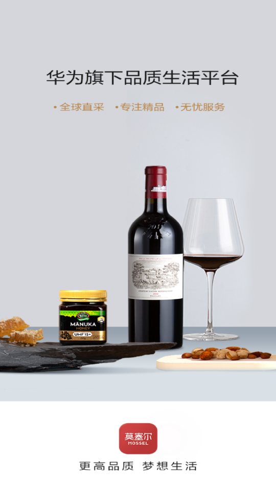 v2.78.1莫塞尔商城app是华为旗下的品质生活平台,一款专为用户提供购物体验的软件,依托华为全球供应链资源,通过全球原产地直采、全供应链管控模式,逐本溯源、苛求品质,提供全球甄选的数百款优质产品,产品品类包括:葡萄酒、烈酒、牛肉、大米、橄榄油、海产品、坚果、茶叶、蜂蜜等,可以满足用户的不同需求,让您无忧放心购。