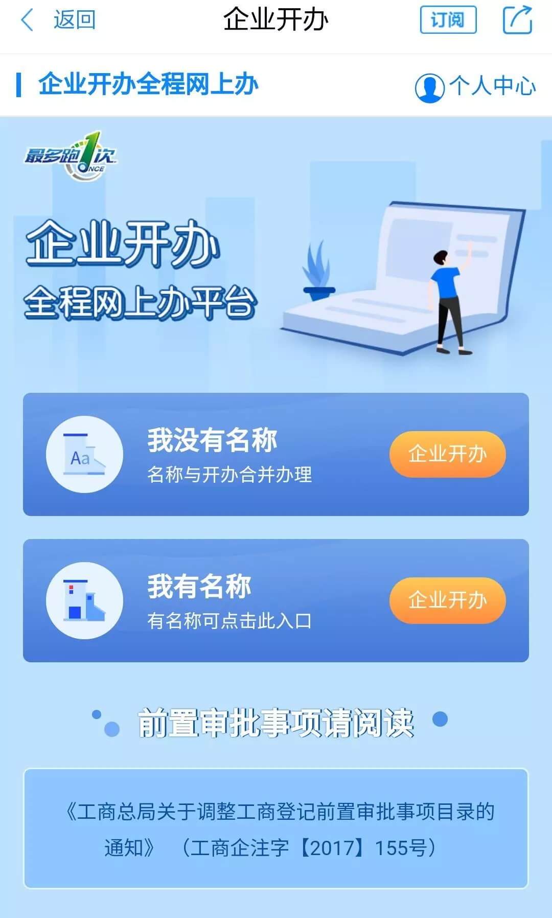 第 三 步 :根据实际情况选择办理路径。未申报企业名称的选择“我没有名称”,已申报过企业名称并获取“自主申报预选号”的选择“我有名称”。