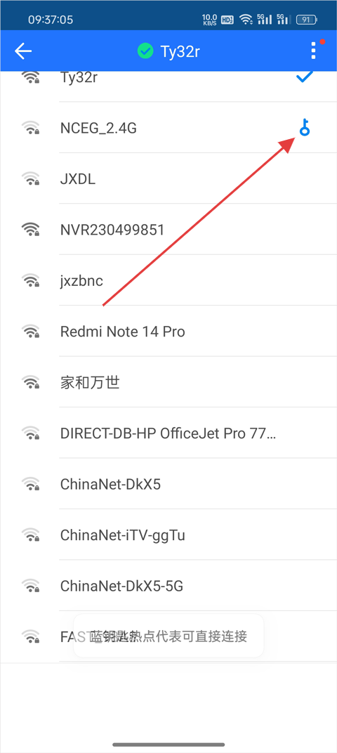 3、查询成功后出现有钥匙的WIFi即可免费连接
