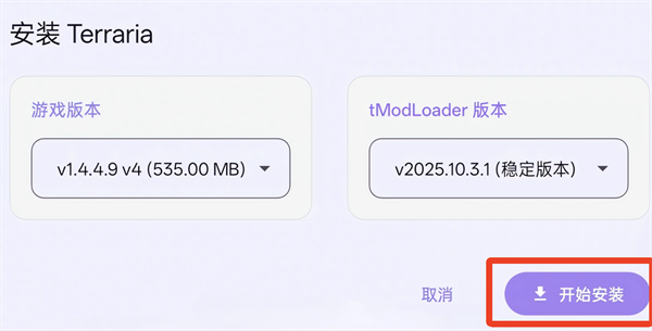 4、在安装Terraria页面点击右下角的“开始安装”按钮启动安装流程。