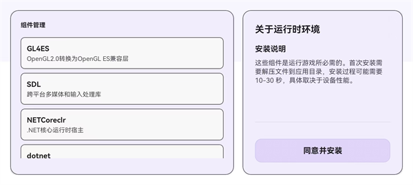 1、在本站下载安装【Rotating Art Launcher启动器】后打开,点击【同意并安装】安装运行环境和组件。