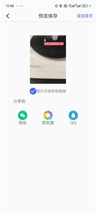 5、按下拍照键后就可以把图片分享出去啦
