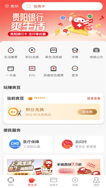 贵阳银行向您推出了全新的手机银行产品—“爽爽bank”。“爽爽bank”手机银行为您提供贴身、全天候的金融服务。您可以随时随地通过“爽爽bank”手机银行办理转账汇款、信用卡、投资理财、便捷缴费、小微贷款等金融业务。