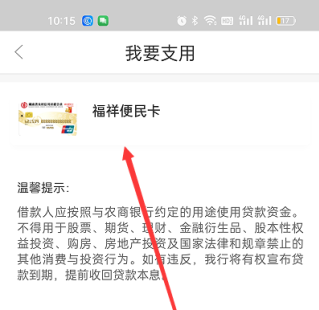 4.点击箭头所指示的“福祥便民卡”。