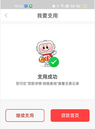 7.选择“支用”,按要求输入密码,您就会看到支用成功的提示,银行卡就多了您支用的金额。