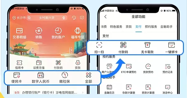 2.服务全面升级:7*24小时自助服务,10年交易明细查询,单笔最高200万转账限额,简洁贴心的适老服务。支持信用卡、贷款、便民卡、智能转账、大额存单、理财、水电燃气缴费、医保社保缴费、电子账户、网点地图、数字人民币、客户经理查询等多项功能。金融服务与生活缴费一应俱全。