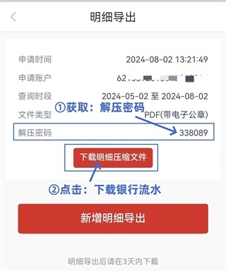 6.获取“密码”、并下载银行流水