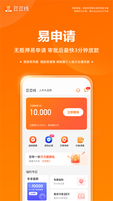 无抵押贷款,纯线上操作。用户通过手机即可申请,简单便捷;