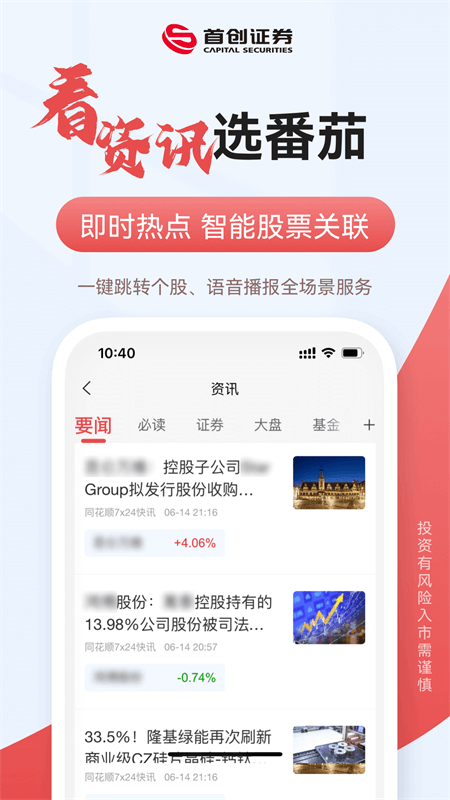 v5.8.0首创证券app(官方名:首创番茄财富)是一站式的财富管理平台,可为用户提供行情、交易、资讯等核心交易功能,更配备风向标、龙虎榜、投资图谱等免费的智能组件服务。