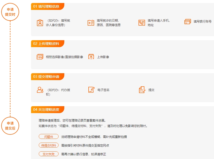 办理赔:无需电话,不跑柜面,自助理赔,秒级到账,进度透明,实时查阅。