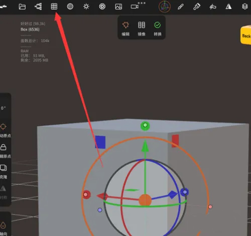 1、点开Nomad Sculpt软件屏幕中最左上角的按钮;
