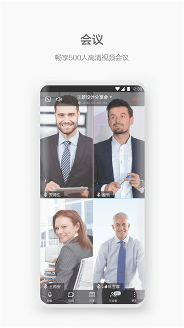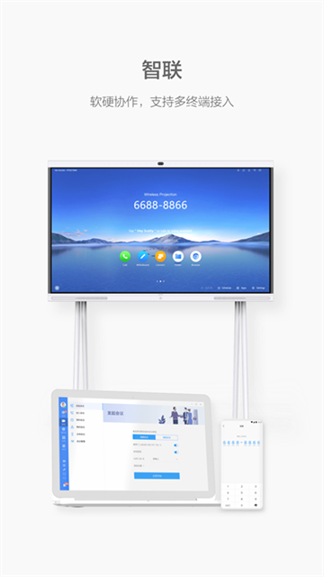 千人同时入会,超/高清视频会议,会议材料实时共享协作;支持智慧屏、手机、平板、电脑、专业会议终端等多端协同。