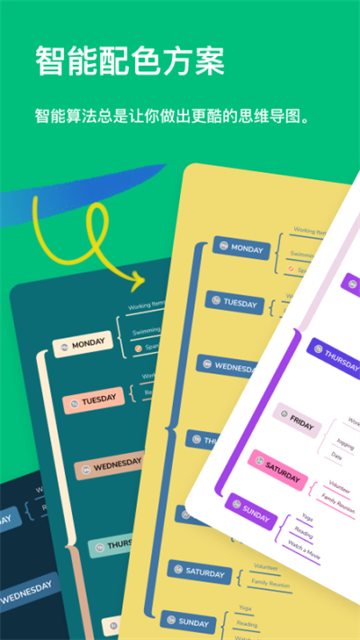 •模版&智能配色方案:提供100+个特别设计定制的模板,结合智能配色方案,让你的每张导图都出色。
