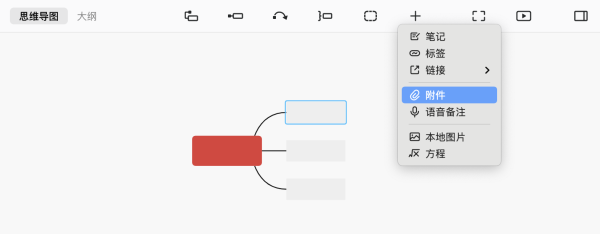 ● 附件:附件支持插入另一张导图或各种格式的文件。插入的附件将变成一个新的主题,点击即可预览。