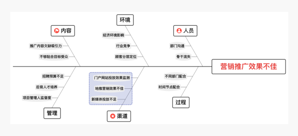 6、鱼骨图(向左/向右):用来进行事件分析、因果分析、问题分析等