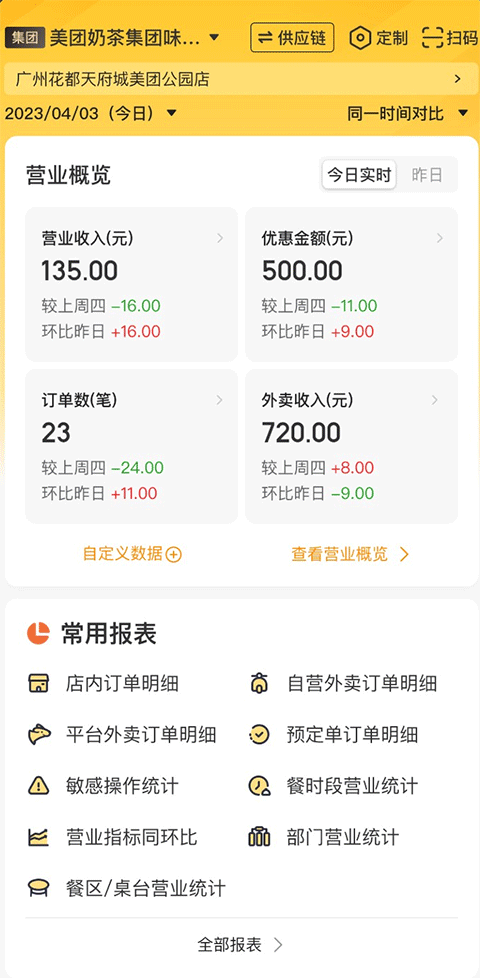 v5.98.1001美团管家App是美团专为线下餐厅经营者打造的移动管理软件,旨在帮助用户高效、便捷地管理店铺日常运营。平台支持实时查看采购明细、出入库记录及库存盘点,并对营业数据进行精细化统计与分析,涵盖每日营收、用餐方式、订单来源等关键指标,助力经营者全面掌握经营状况,深入洞察客户需求,从而优化服务策略与运营决策。