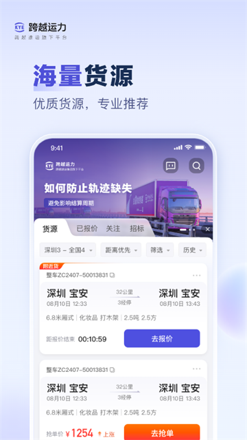 跨越运力平台拥有百万企业客户资源,接单不在愁;